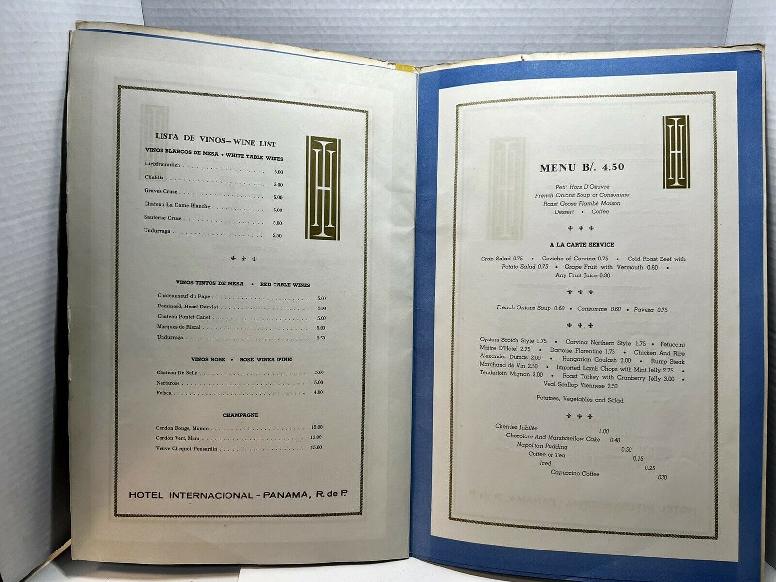 Vintage 60s Hotel Internacional Panama Dinner Menu