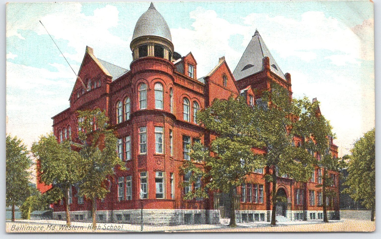 Vintage Baltimore MD Western High School Red Brick Building Postcard