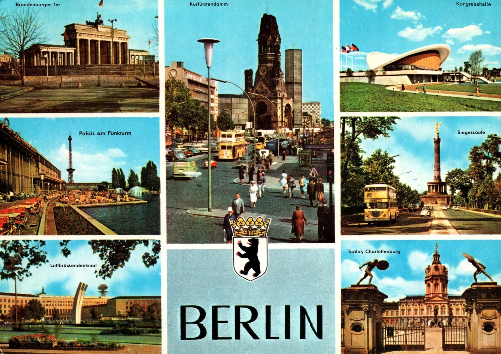 VINTAGE CONTINENTAL SIZE POSTCARD MULTIPLE STREET SCENES AND MUSEUMS BERLIN