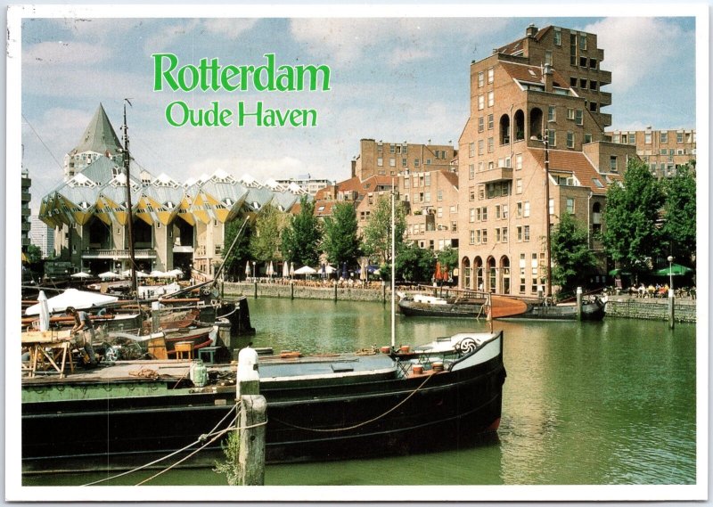 VINTAGE CONTINENTAL SIZE POSTCARD ROTTERDAM'S OUDE HAVEN OLD HARBOR