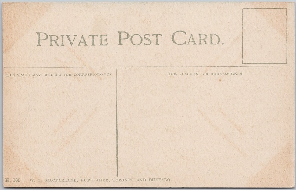 This original lithograph postcard features a detailed and colorful view of the C.T.R. (Canadian Pacific Railway) Station in Hamilton, Ontario. The image showcases multiple railroad tracks with several trains, set against a backdrop of industrial buildings and a scenic park area with trees and manicured flower beds. The warm pastel tones and intricate printing reflect early 20th-century postcard production techniques, capturing a historically significant transportation hub in Hamilton.Published by W.G. Macfarlane, a notable publisher based in Toronto and Buffalo, this postcard is marked as a Private Post Card with divided back for correspondence and address. The card measures the standard size of approximately 5.5 x 3.5 inches. The scene highlights the importance of rail travel and commerce in Ontario during its era, making it a valuable collectible for railway enthusiasts and those interested in Canadian history and vintage postcards.Please zoom into and look closely at the front and back photos to view condition and feel free to send me a message if you have any questions. Thanks kindly for viewing, D