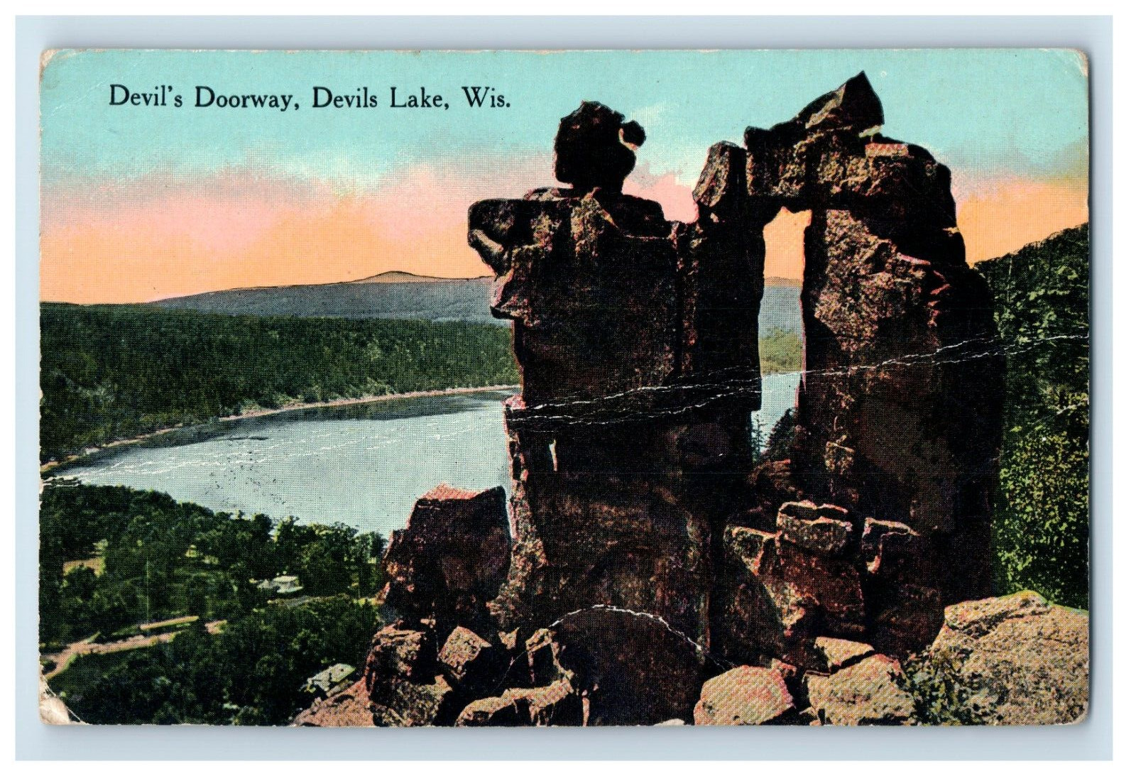 Vintage Devils Doorway, Devils Lake, Wis. Postcard F110E