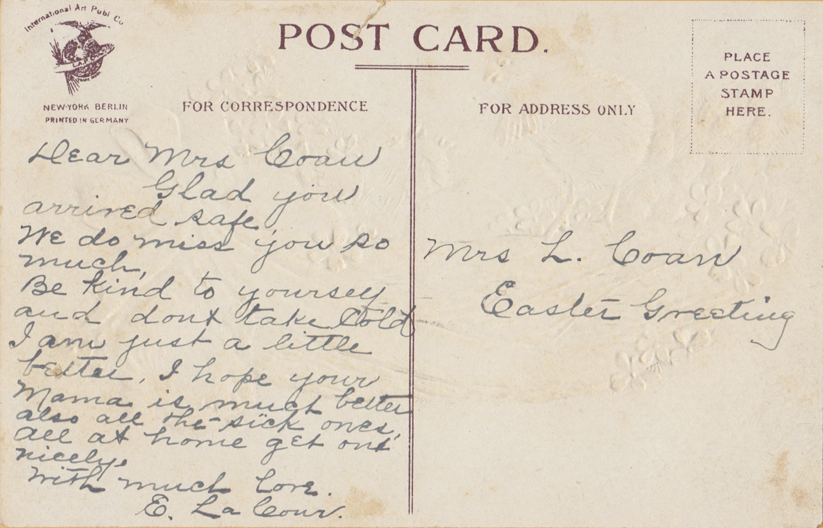 No Postmark - International Art Publishing, Printed in Germany