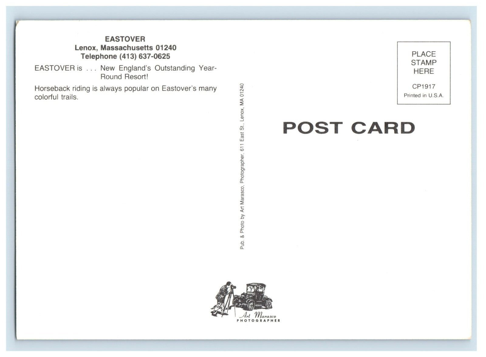 Vintage Eastover Lenox Massachusetts. Postcard #5D E
