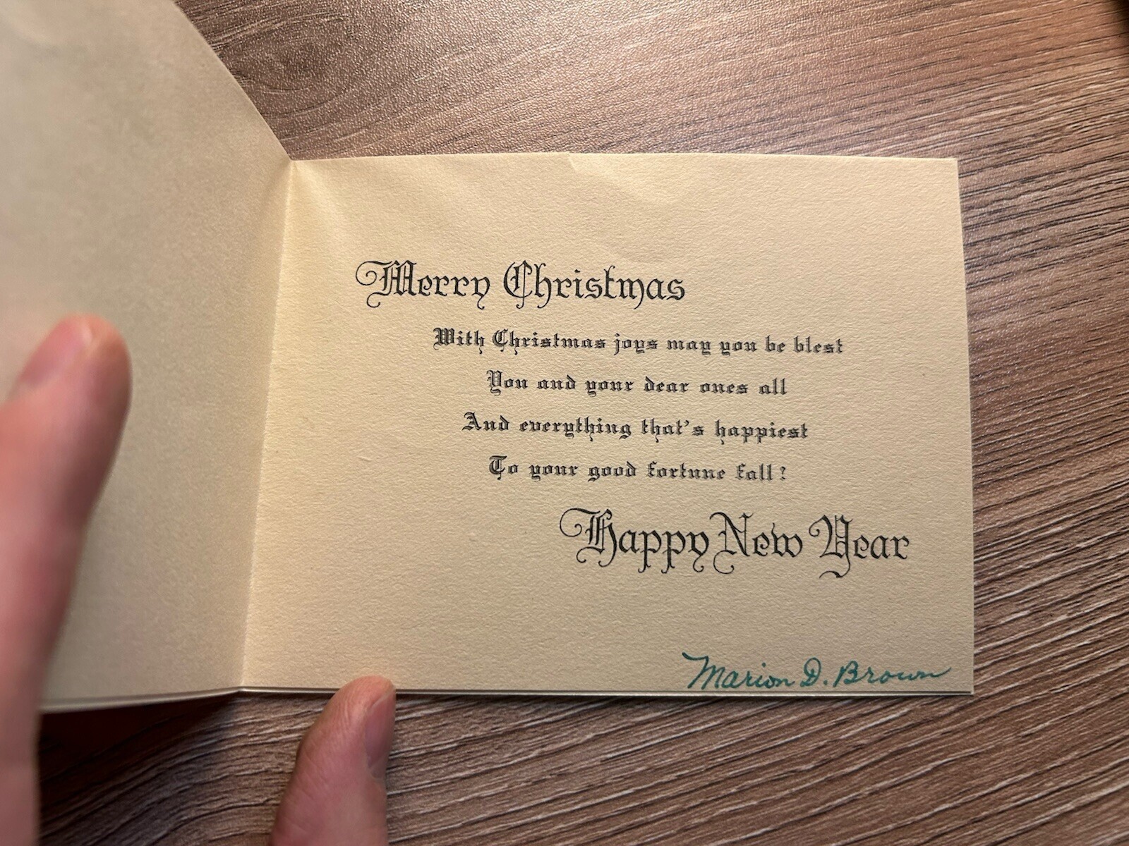 This vintage Christmas greeting card is perfect for the holiday season. The card features beautiful embossed details and is sure to bring a touch of nostalgia to your festive celebrations. Whether you're looking to add to your collection of vintage greeting cards or simply want to send a unique message to your loved ones, this card is sure to impress.The card is in great shape and has been well-preserved over the years. It's the perfect addition to any collection and will make a great conversation piece at your holiday gatherings. Get into the spirit of the season with this charming vintage Christmas greeting card.