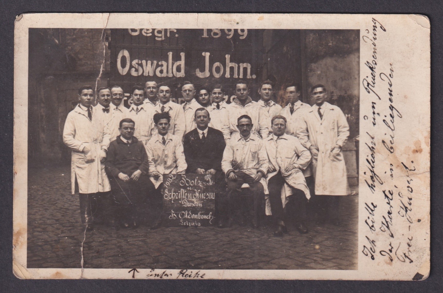 Vintage Germany RPPC Oswald John Workers 1899The postcard has a crease. Please, look at the pictures!