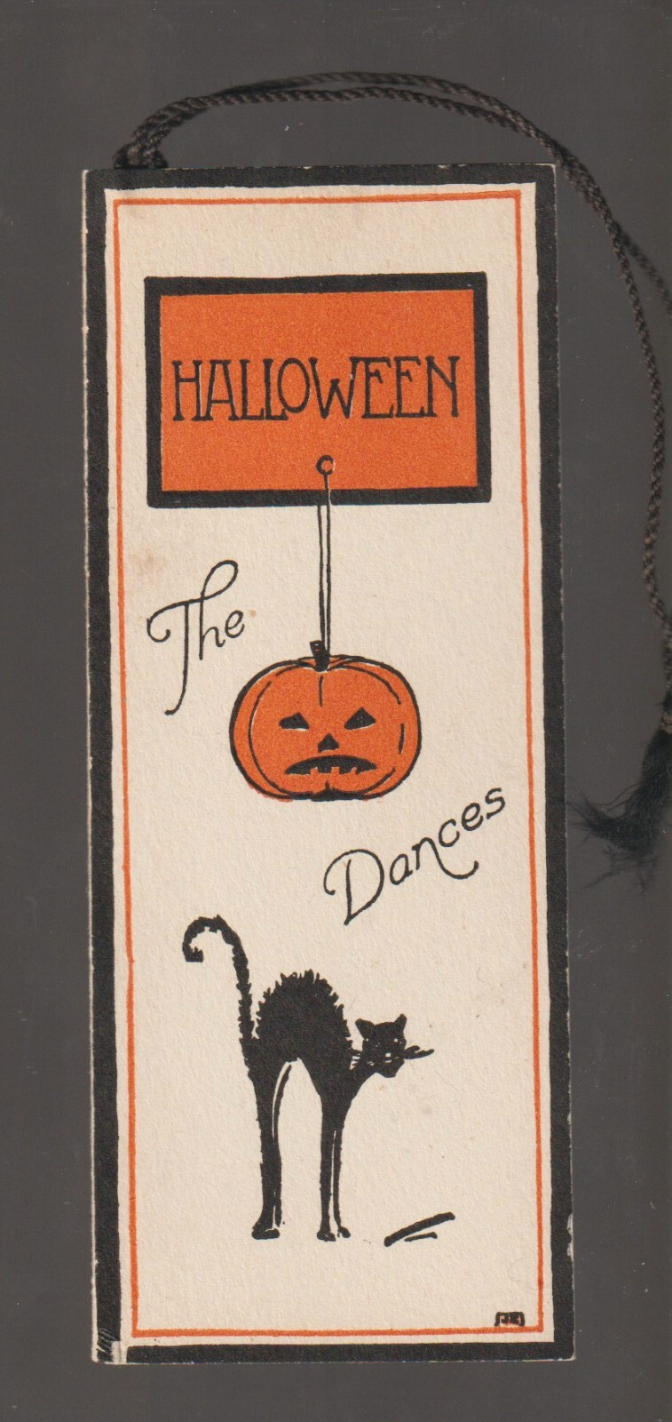 Vintage HALLOWEEN c1920 DANCE CARD JOL BLACK CAT Jack O'lantern EX CARPENTIER
