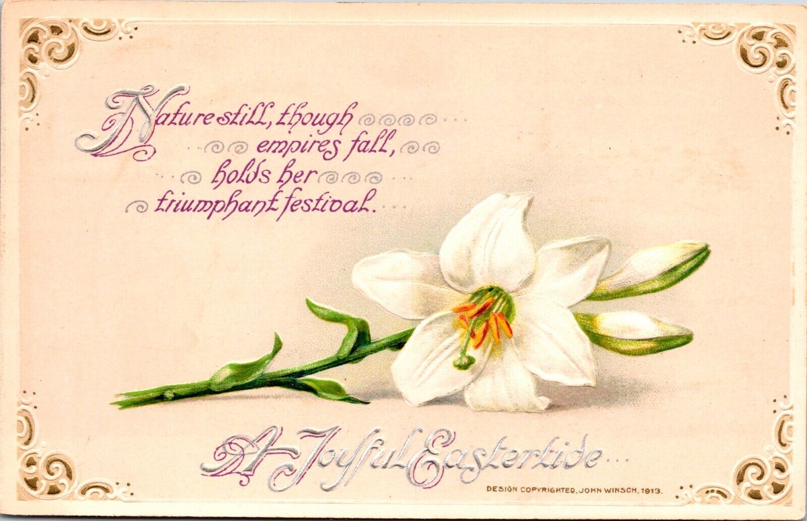 Vintage John Winsch Beautiful Easter Lily Flower Antique Postcard