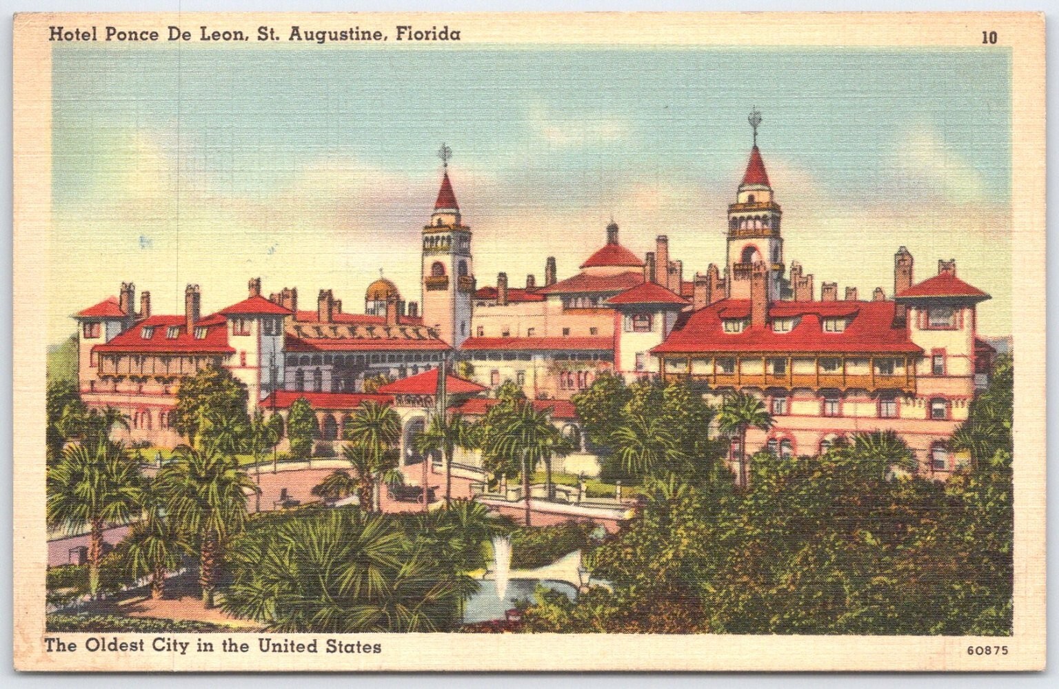Vintage Linen Postcard Hotel Ponce De Leon St Augustine FL
