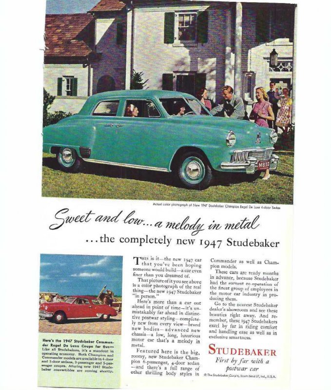 Vintage Magazine Ad - 1947 Studebaker Champion