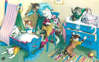 Vintage Mainzer Dressed Cats Postcard: 4881, Parents with...