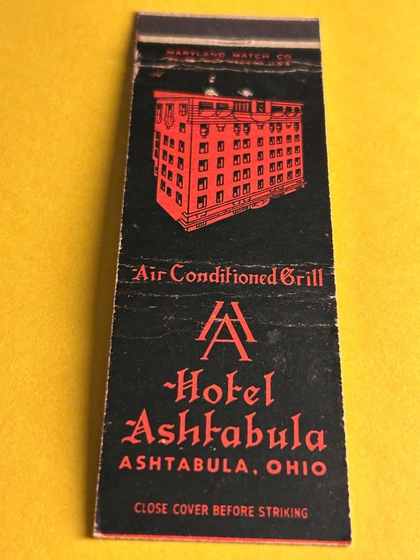 Vintage Matchbook Cover Hotel Ashtabula Ohio MB182