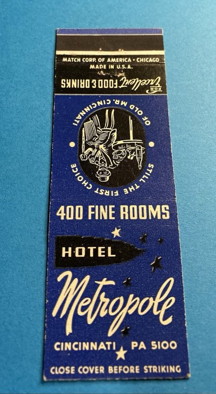 Vintage Matchbook Cover - Hotel Metropole Cincinnati OH Ohio MB124