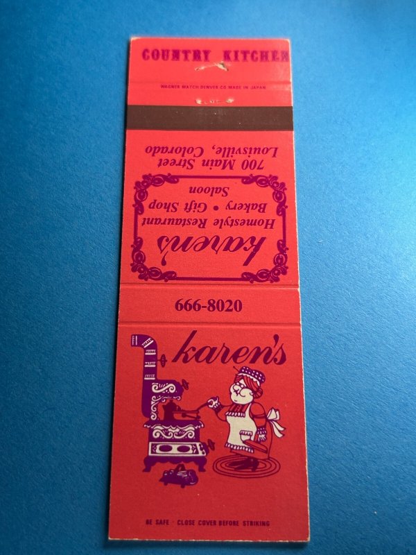 Vintage Matchbook Cover Karen's Restaurant Louisville, Colorado MB132