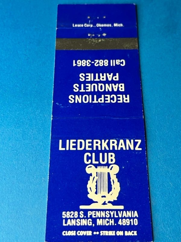 Vintage Matchbook Cover Liederkranz Club Lansing, Michigan MB164