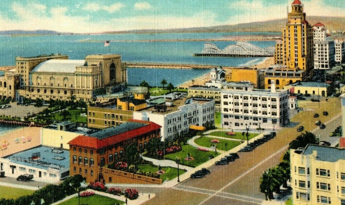Vintage Overlooking Ocean Ave. Showing Auditorium Long Beach, CA P164