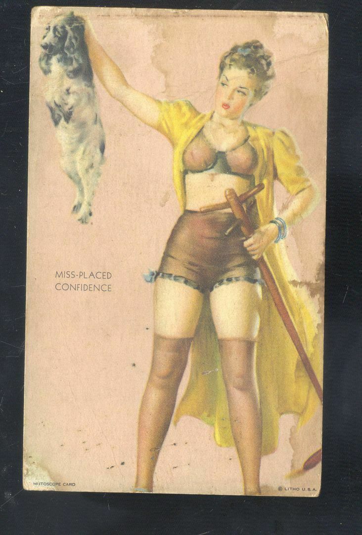 VINTAGE PINUP RISQUE MISS PLACED CONFIDENCE MODEL DOG VINTAGE POSTCARD