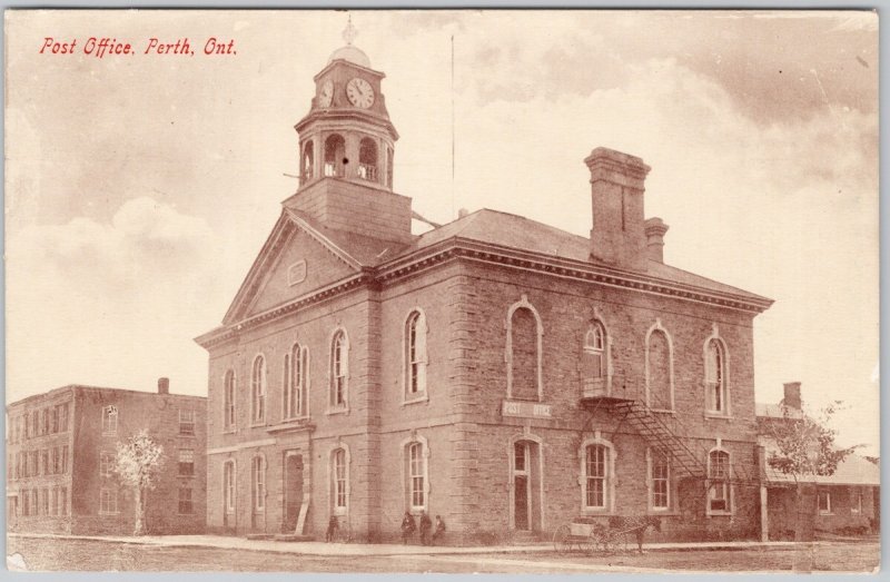 Vintage Post Office Perth Ontario 1912 Allan's Mills Split Ring Postcard H81