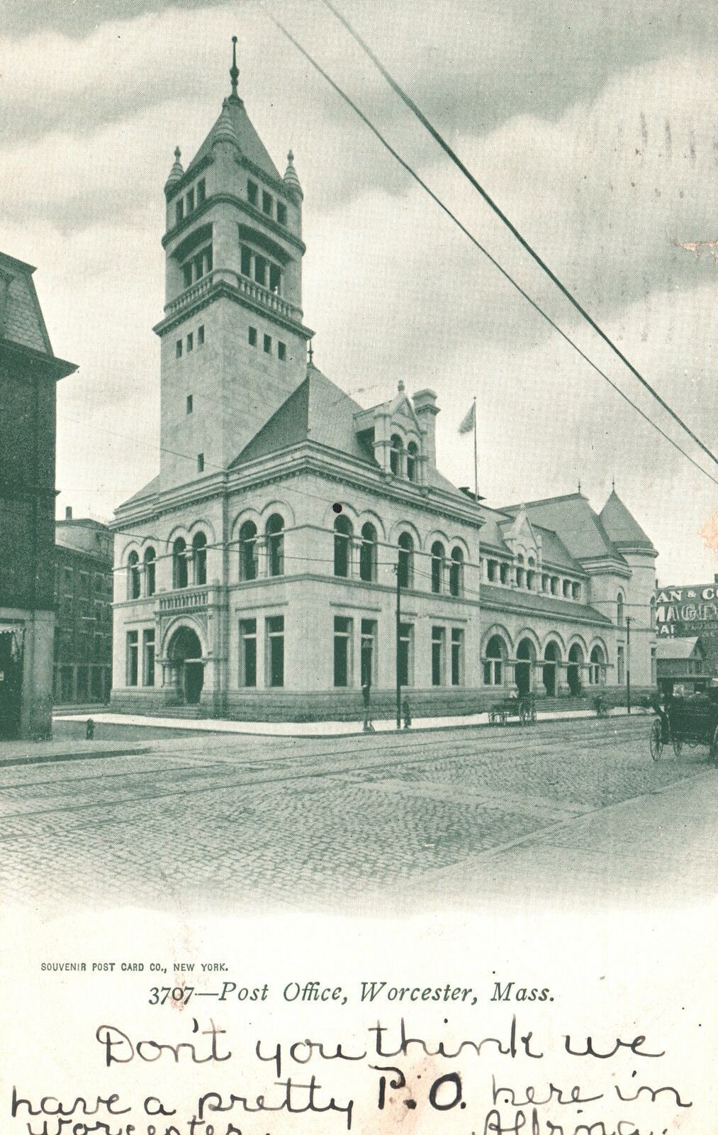 Vintage Postcard 1905 Post Office Building Worcester Massachusetts MA Structure