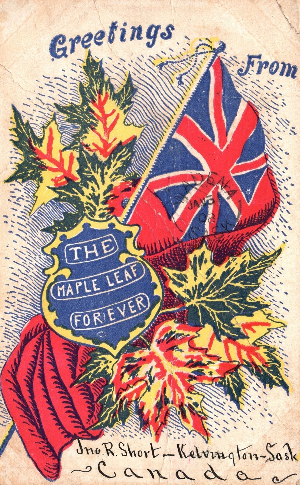 Vintage Postcard 1908 Greetings From The Maple Leaf Forever Flagship Canada Listing and template services provided by inkFrog