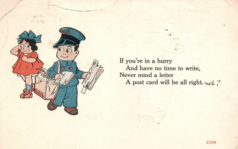 Vintage Postcard 1916 Never Mind Letter Post Card Will Be Alright Postman Comics