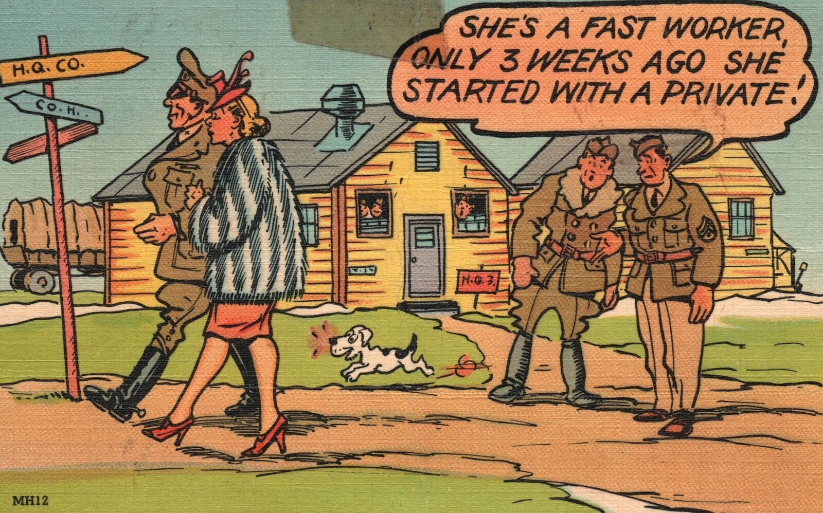 Vintage Postcard 1942 She's A Fast Worker Only 3 Weeks Ago Started Private Comic