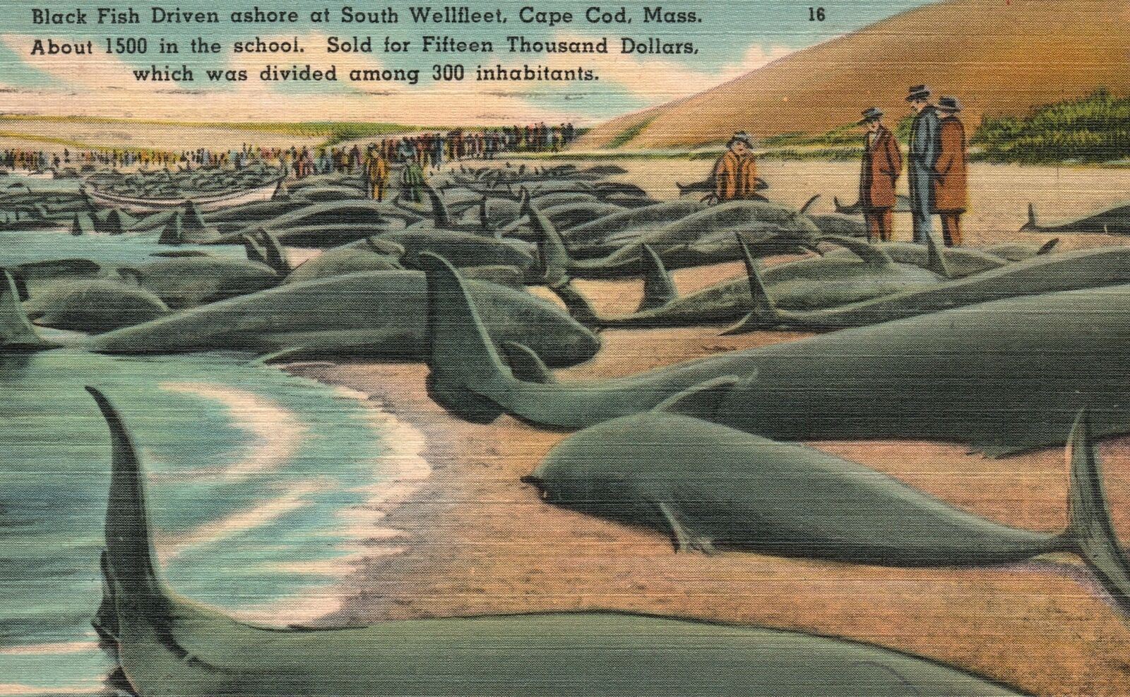 Vintage Postcard 1947 Black Fish Driven Ashore Wellfleet Cape Cod Massachusetts