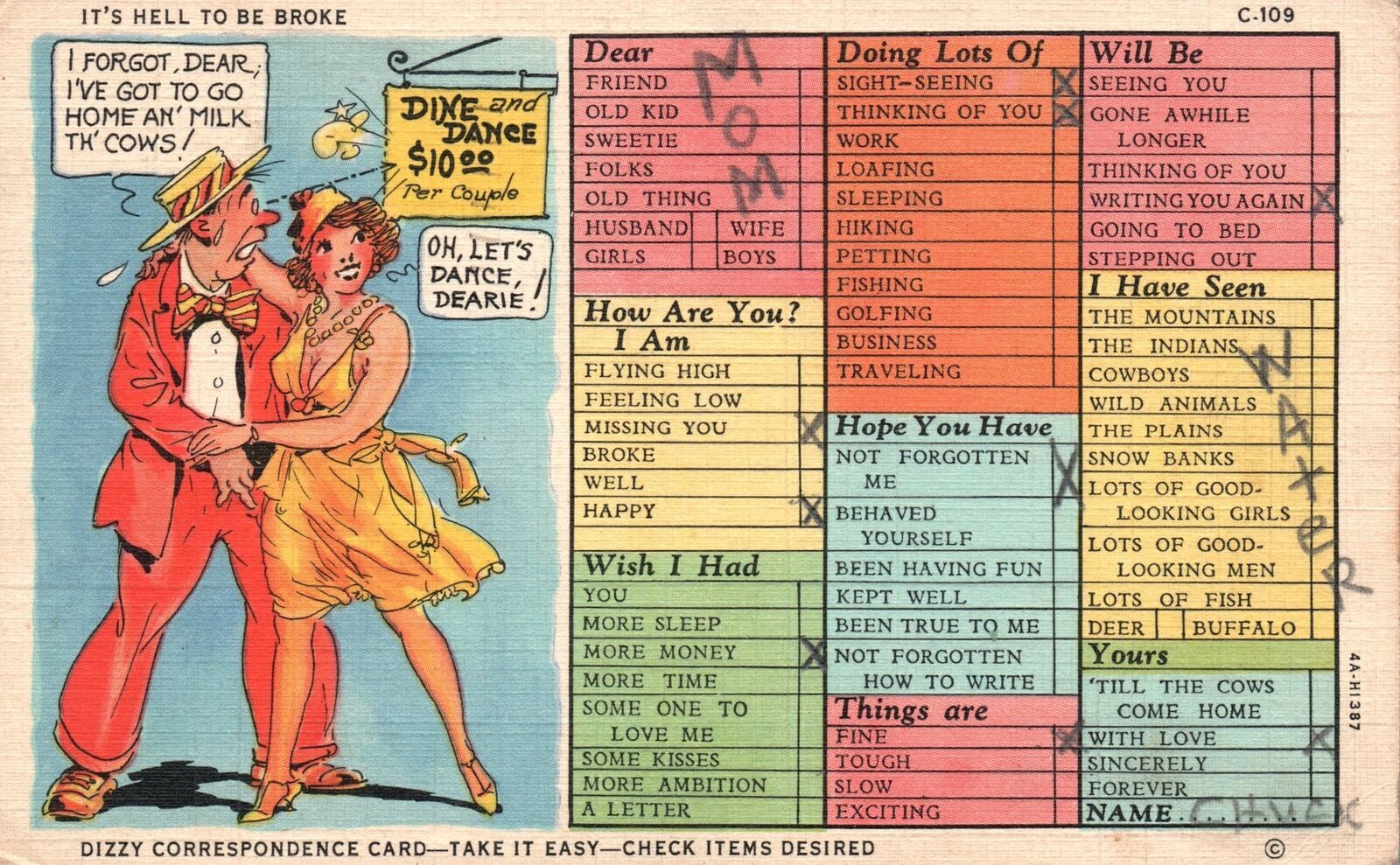 Vintage Postcard 1947 Time Saver Card Using Check Marks Too Buay To Write Much Listing and template services provided by inkFrog