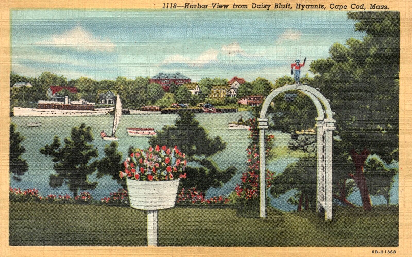 Capture the timeless beauty of Cape Cod with this exquisite Vintage Postcard from 1948. Transport yourself to the charming town of Hyannis and soak in the picturesque view of the Harbor from Daisy Bluff. This authentic piece of history allows you to experience the nostalgia and romance of a bygone era. With its faded hues and delicate details, this postcard is a true testament to the artistry and craftsmanship of the past. Imagine the stories this postcard holds, the handwritten messages and heartfelt sentiments that were once penned on its back. As you hold it in your hands, you can't help but feel a connection to the past, a glimpse into the lives of those who once called Cape Cod their home. Whether you're a collector of vintage memorabilia or simply appreciate the beauty of yesteryears, this postcard is a must-have addition to your collection. Frame it and display it in your home, or use it to send a heartfelt message to a loved one, bringing a touch of old-world charm to your correspondence. With its captivating image and rich history, this Vintage Postcard from 1948 is a true treasure. Don't miss the opportunity to own a piece of Cape Cod's heritage and add a touch of nostalgia to your life.