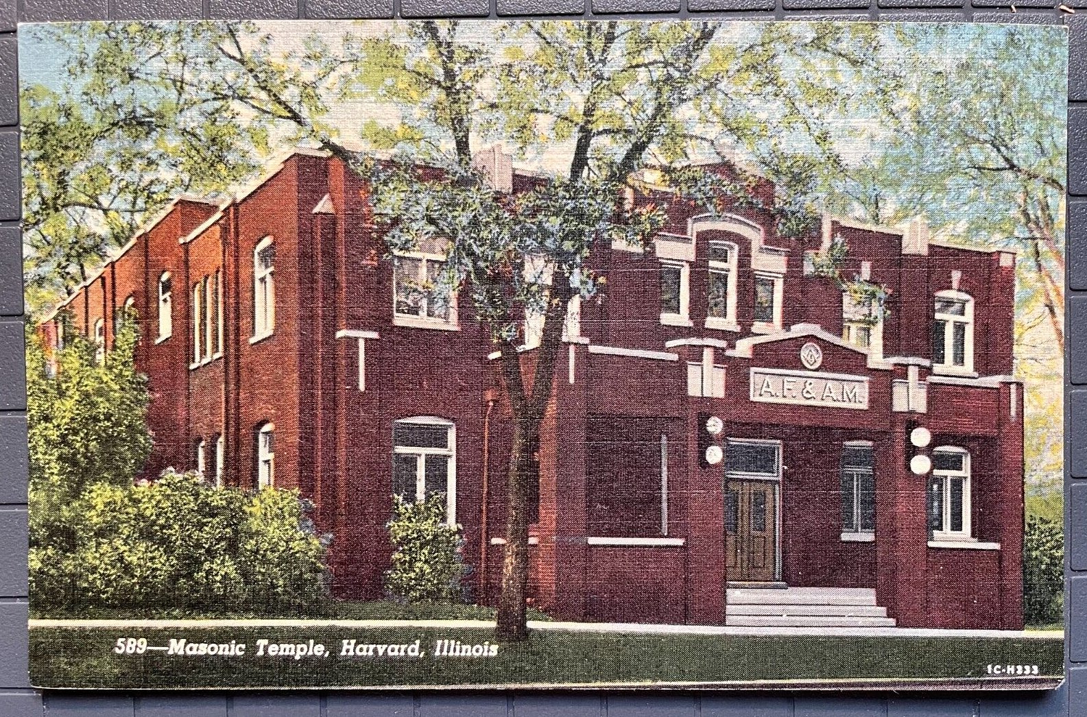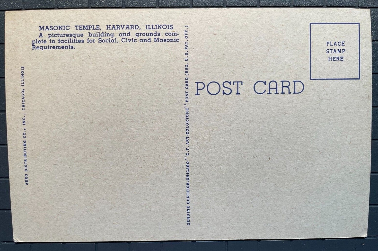 Vintage Postcard 1951 Masonic Temple, Harvard, Illinois