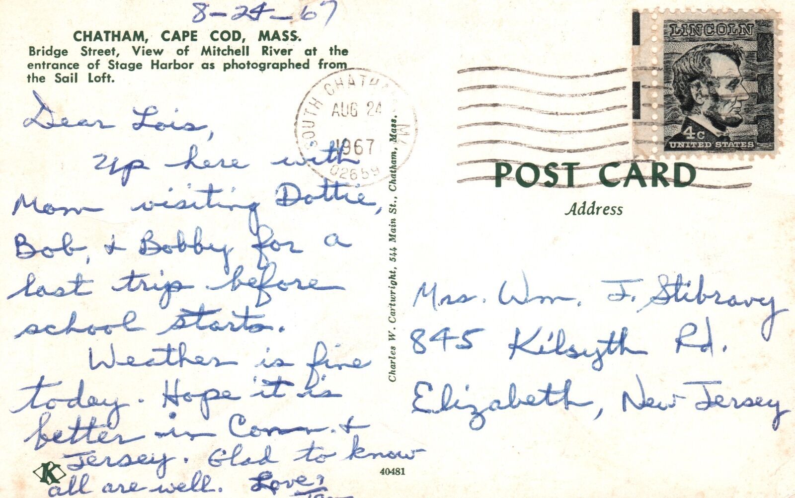 Vintage Old Postcard 1967 Bride Street Mitchell River Chatham Cape Cod Massachusetts