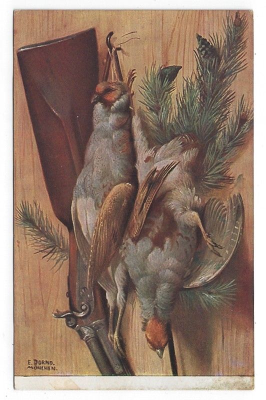 Condition: Used A vintage postcard showing the results of a successful hunt hanging on the wall. Signed E. Dorno. Unposted. Series 193. Printed in Germany. No creases, slight corner wear. Guaranteed authenti ... Read More