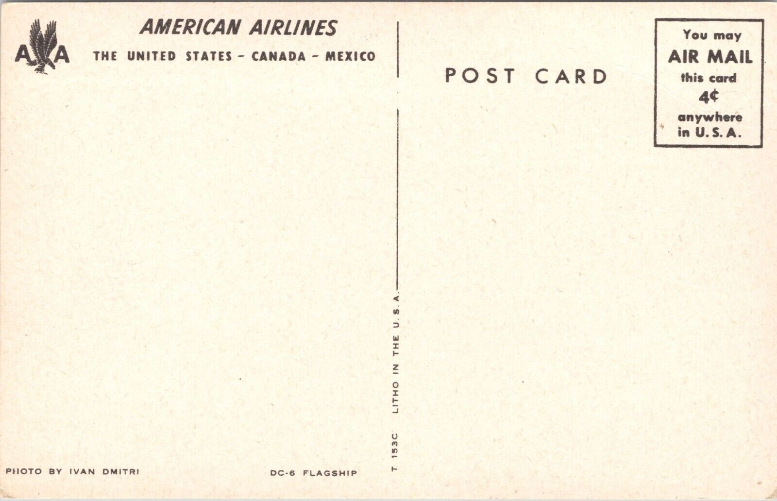 Vintage Postcard - AMERICAN AIRLINES D-6 FLAGSHIP Airplane