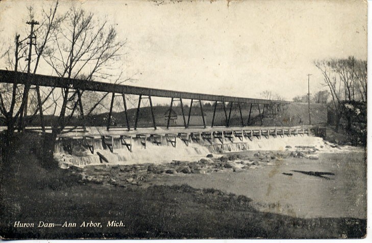 VINTAGE POSTCARD ANN ARBOR MICHIGAN HURON DAM BRIDGE