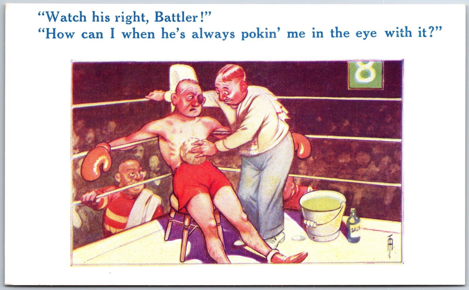 VINTAGE POSTCARD BAMFORTH BOXING COMIC HUMOR WHITE BORDER c. 1920