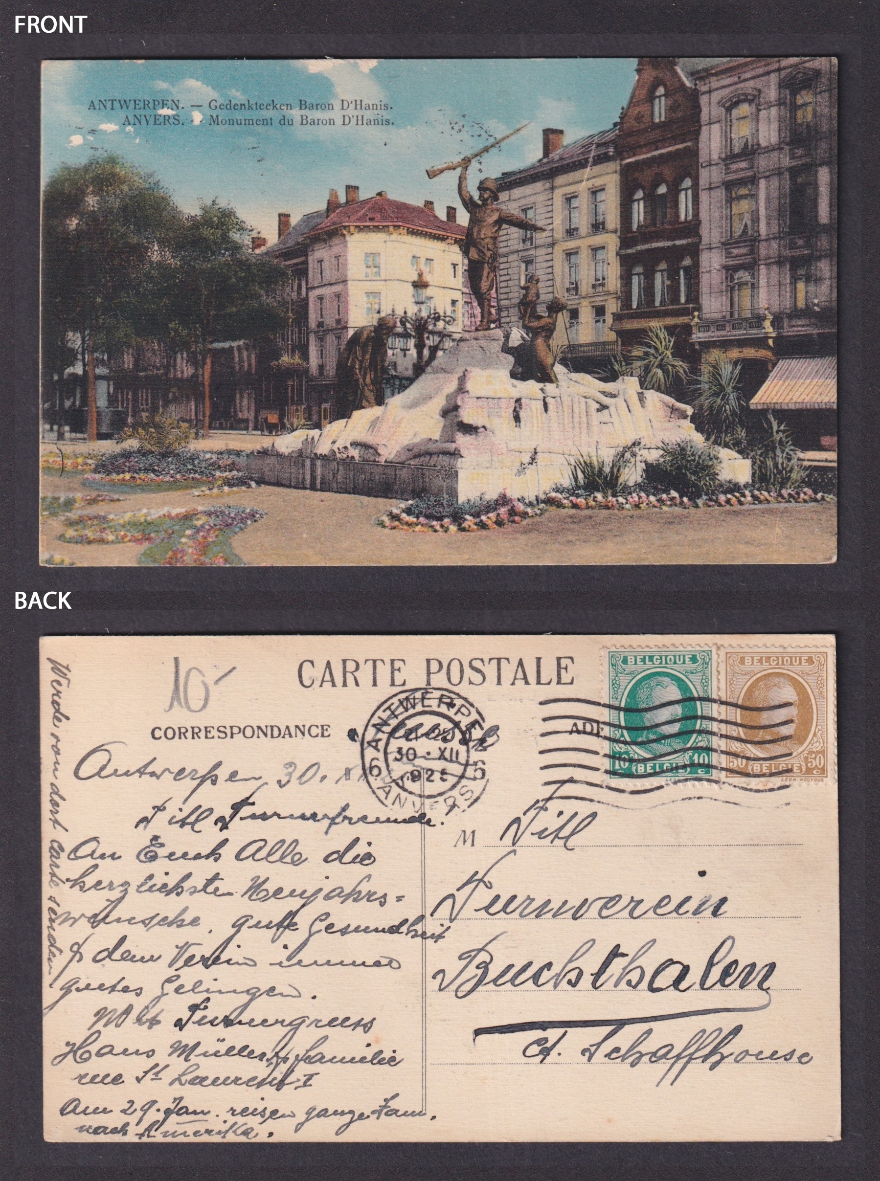 Vintage Postcard Belgium Antwerp Baron D'Hanis Monument 1925 Please, look at the pictures!