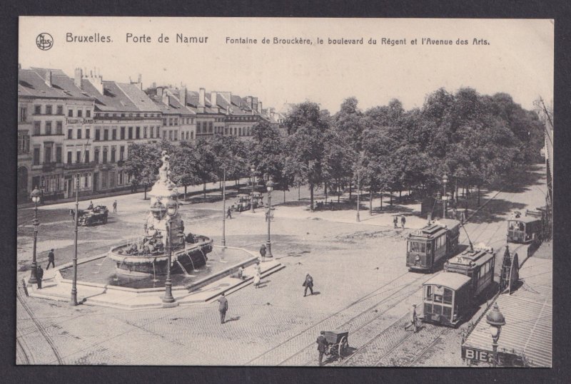 Vintage Postcard Belgium Brussels Namur Gate Old trams