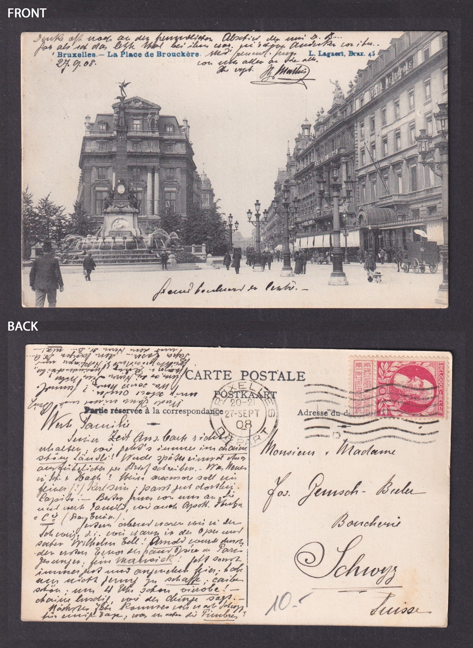 Vintage Postcard Belgium Brussels Place de Brouckere 1908 Please, look at the pictures!