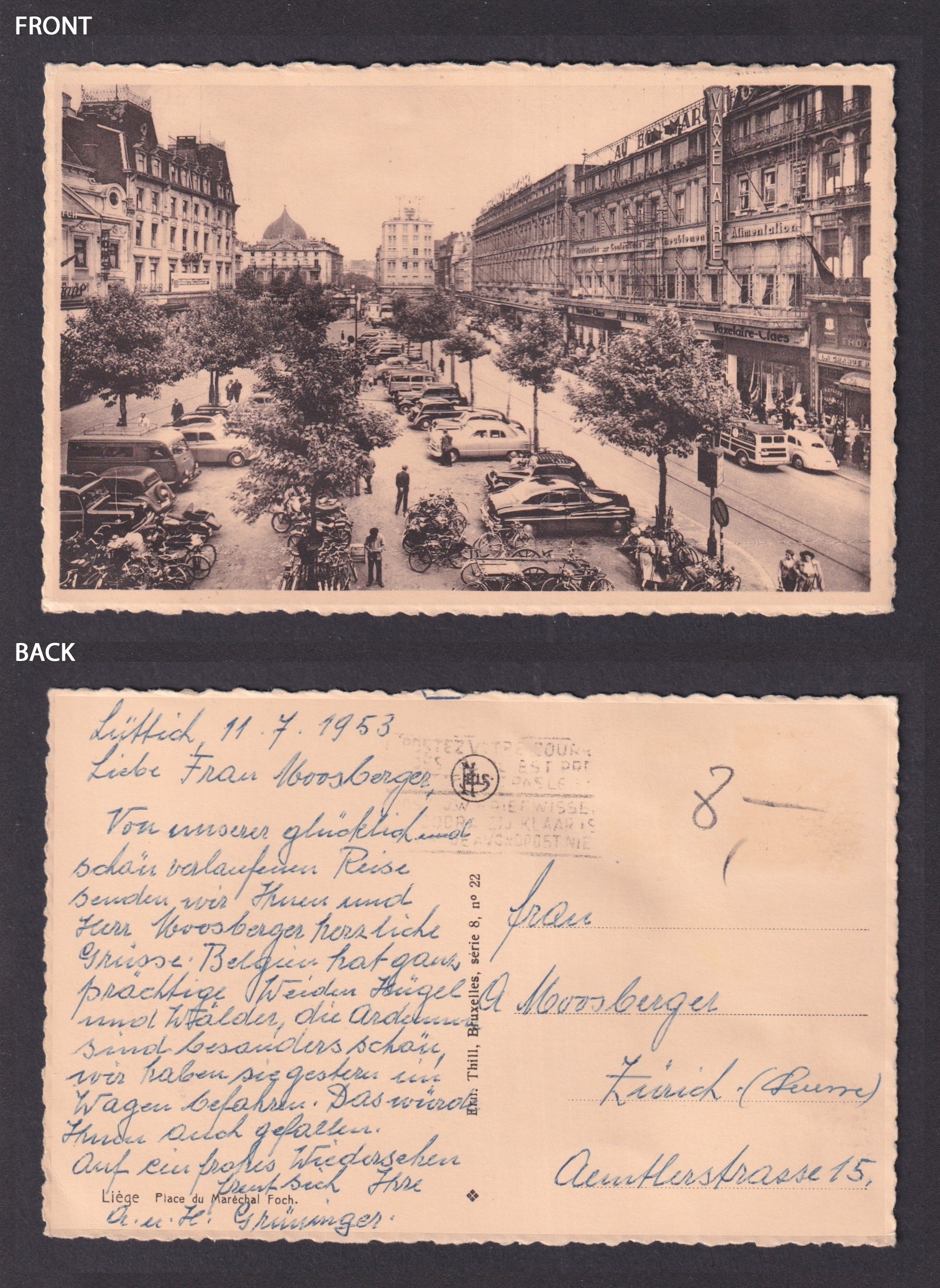 Vintage Postcard Belgium Liege Place Verte 1953Please, look at the pictures!
