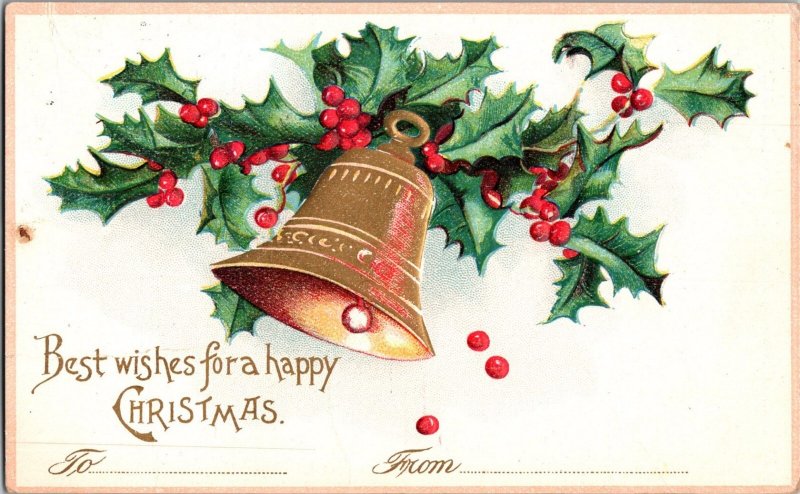 Vintage Postcard Best Wishes Christmas Bell Holly American Red Cross Seal KJ10