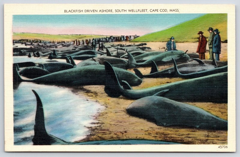 Vintage Postcard Blackfish Driven Ashore South Wellfleet Cape Cod Massachusetts