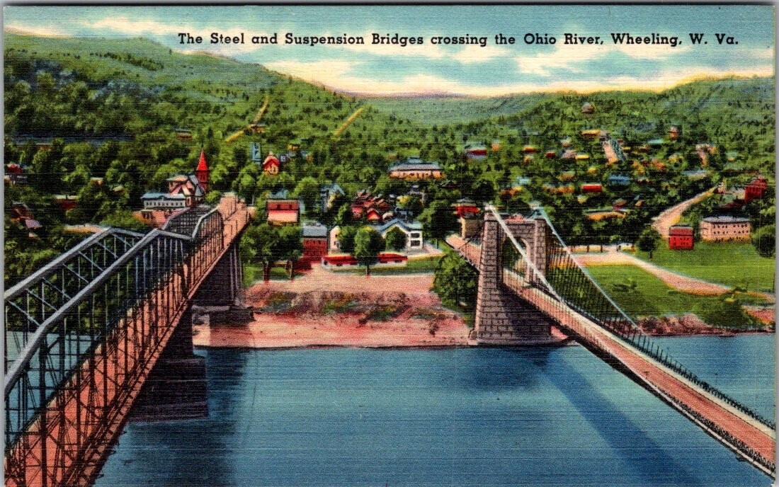 Vintage Postcard Bridges Wheeling WV JN2
