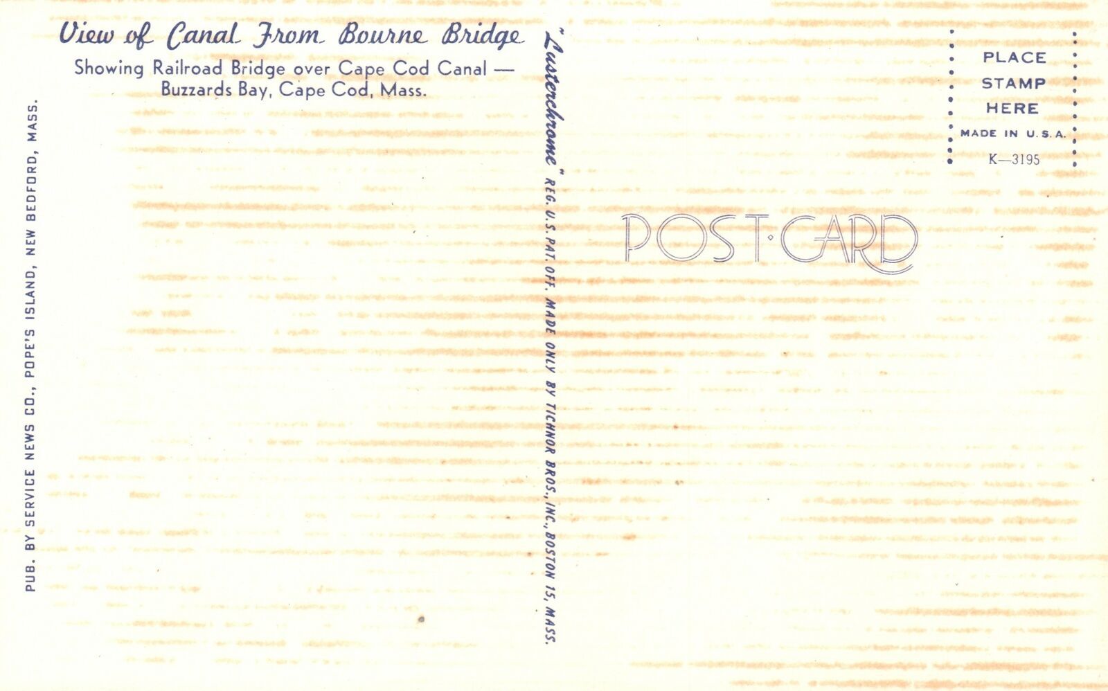 Vintage Postcard Canal From Bourne Bridge Buzzards Bay Cape Cod Massachusetts MA