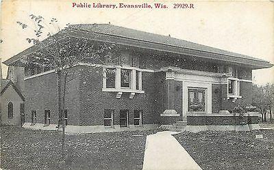 Vintage Postcard, Carnegie? Public Library, Evansville WI...