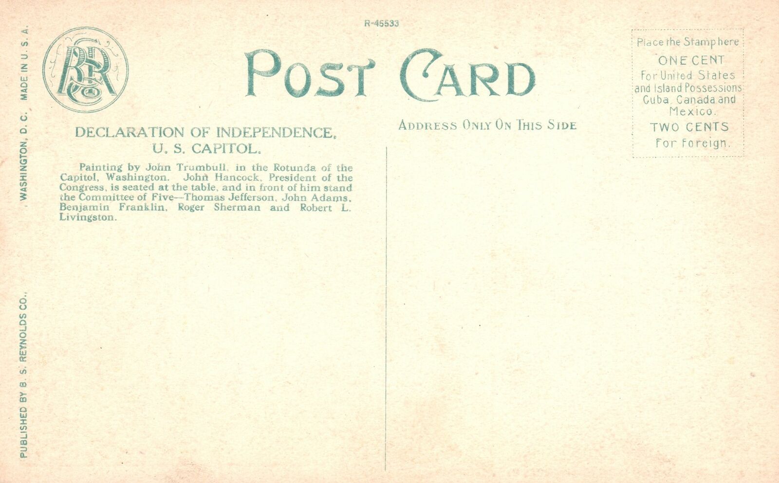 Vintage Postcard Declaration Of Independence U. S. Capitol Washington D. C.