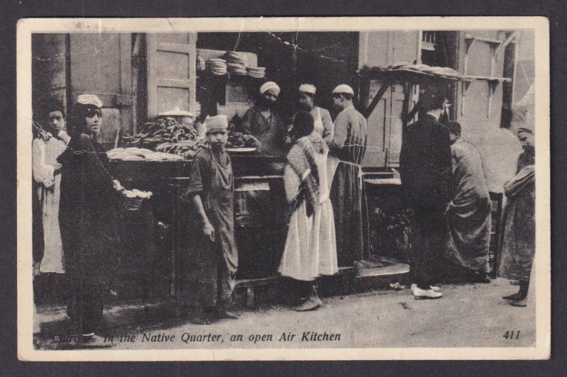 Vintage postcard EGYPT Cairo Native Quarter Open Air Kitchen The postcard has a crease. Please, look at the pictures!