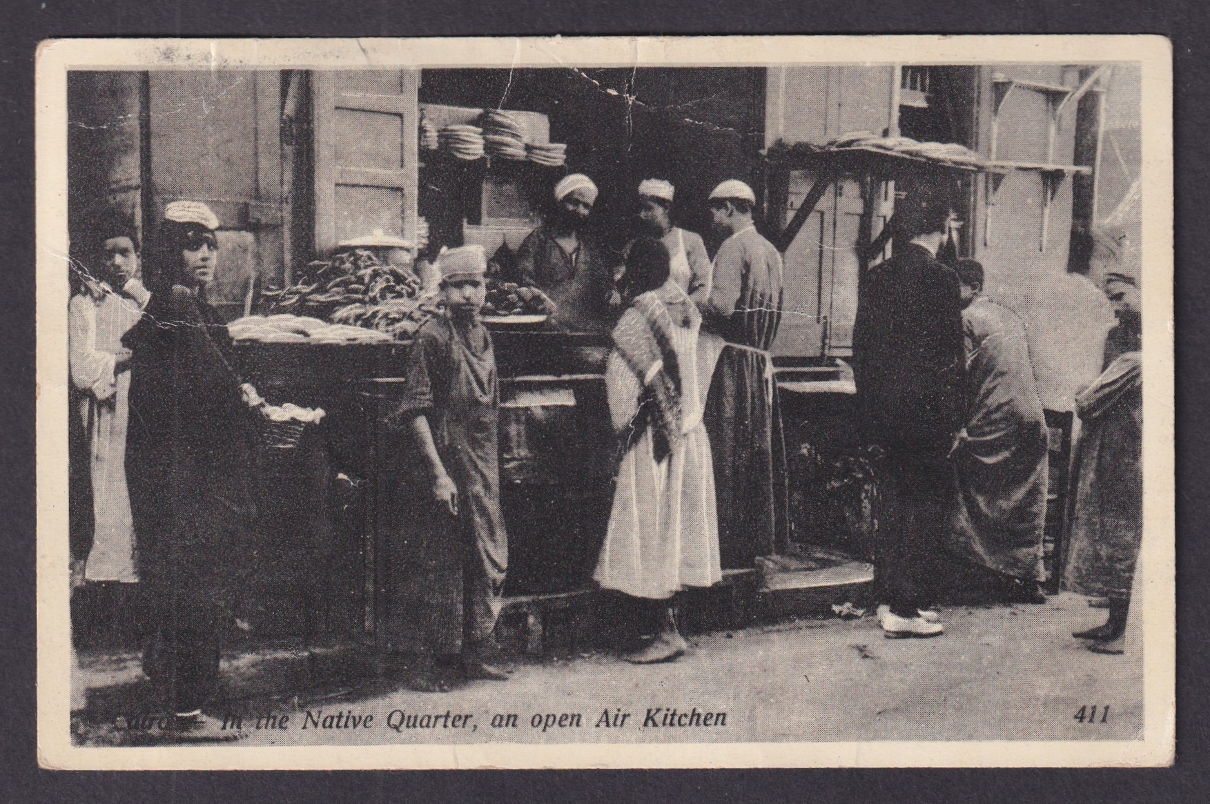 Vintage postcard EGYPT Cairo Native Quarter Open Air KitchenThe postcard has a crease. Please, look at the pictures!