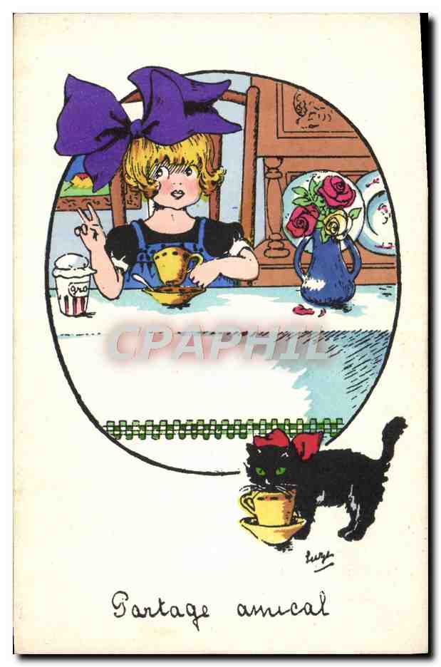 VINTAGE POSTCARD Fantasy Illustrator Child Cat Kitten