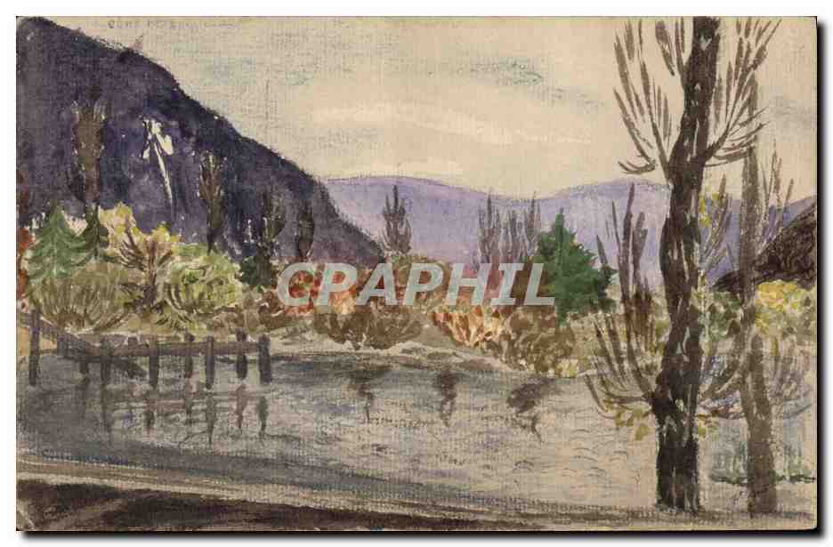 Vintage Postcard Fantasy Landscape (Has the hand drawing)