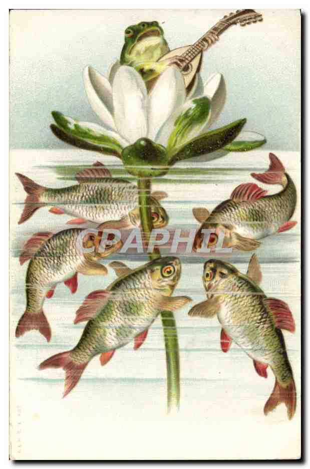 VINTAGE POSTCARD Frog Toad Poisson Guitar